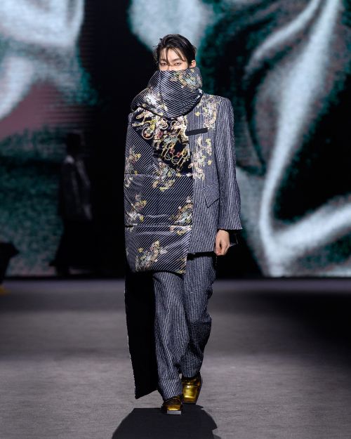 최충훈 디자이너의 ‘두칸’이 ‘Still Elysium’을 테마로 끊임없이 변화하고 소음으로 가득 찬 현대 사회 속에서 시간이 멈춘 듯한 고요한 이상향을 패션으로 풀어냈다.