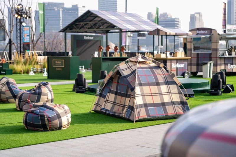 이번 행사는 ‘바버’가 글로벌 시장에서 처음 선보인 ‘페스티벌형 팝업’으로 브랜드의 출발점인 영국식 아웃도어 문화와 페스티벌 헤리티지를 현대적으로 재해석했다. 텐트와 캠핑 의자, 목재 구조물 등 아웃도어 요소에 바버의 시그니처 ‘드레스 타탄’ 패턴을 결합해 브랜드 정체성을 직관적으로 구현했으며 ‘도심 속 아웃도어 라이프스타일’이라는 메시지를 공간 전반에 녹여냈다.