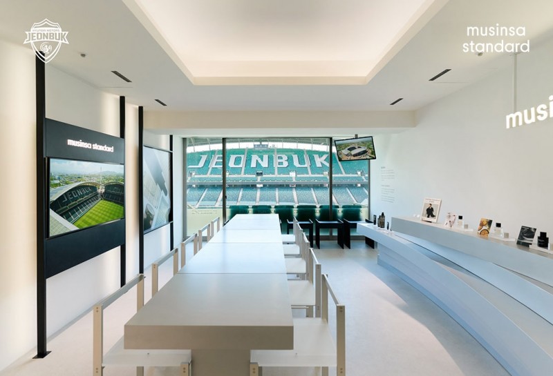 ‘무신사 스탠다드’는 전북현대모터스FC의 홈 구장인 전주월드컵경기장 내 스카이박스 공간을 활용한 브랜딩 룸을 신규 오픈한다. 스카이박스는 경기장 전체를 한눈에 조망할 수 있으며 쾌적하고 프라이빗한 관람 환경을 제공하는 프리미엄 공간이다.