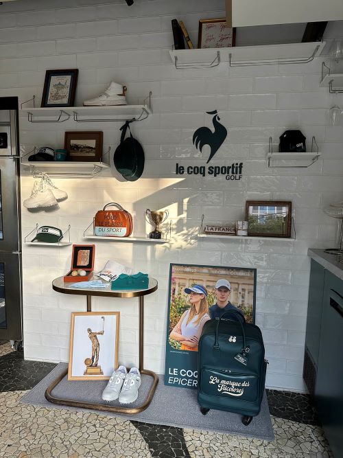 노천 카페가 연상되는 레스토랑 외관에는 파리 명소를 배경으로 한 르꼬끄골프 화보를 전시했다. 하얀색 벽면의 내부에는 필드뿐 아니라 도심 속 라이프스타일과도 어울리는 화이트와 그린 조합의 티셔츠, 맨투맨, 선바이저, 가방 등이 전시되어 실내 인테리어 조명과 컬러 등과 어우러진 오브제로 활용돼, 패션과 미식이 조화롭게 어우러진 공간을 연출했다.
