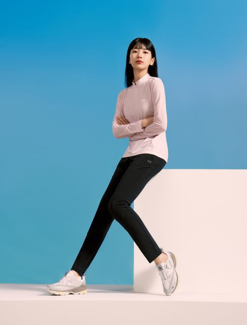 목까지 올라오는 집업 형태로 뜨거운 햇살로부터 뒷목을 보호하고 메쉬 소재로 통기성이 뛰어나다. 자외선 차단이 용이한 긴 팔 제품과 반팔 2가지 종류로 출시됐으며 기하학 패턴으로 시선을 분산해 체형 노출을 보완했다. 긴 팔 11만9천원, 반팔 9만 9천원.