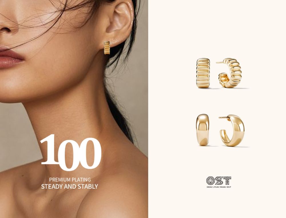 100밀스 주얼리는 화려하고 존재감 있는 빅 사이즈 스타일이 강세인 트렌드에 발맞춰 출시된 라인으로 주얼리 표면에 100밀스에 달하는 도금층을 쌓아 올려 오랜 기간 변색 없이 착용할 수 있다.