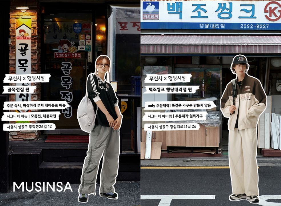 무신사가 지역 상권 활성화에 동참하기 위해 성동구에 위치한 행당시장을 알리는 패션 콘텐츠를 제작한다.