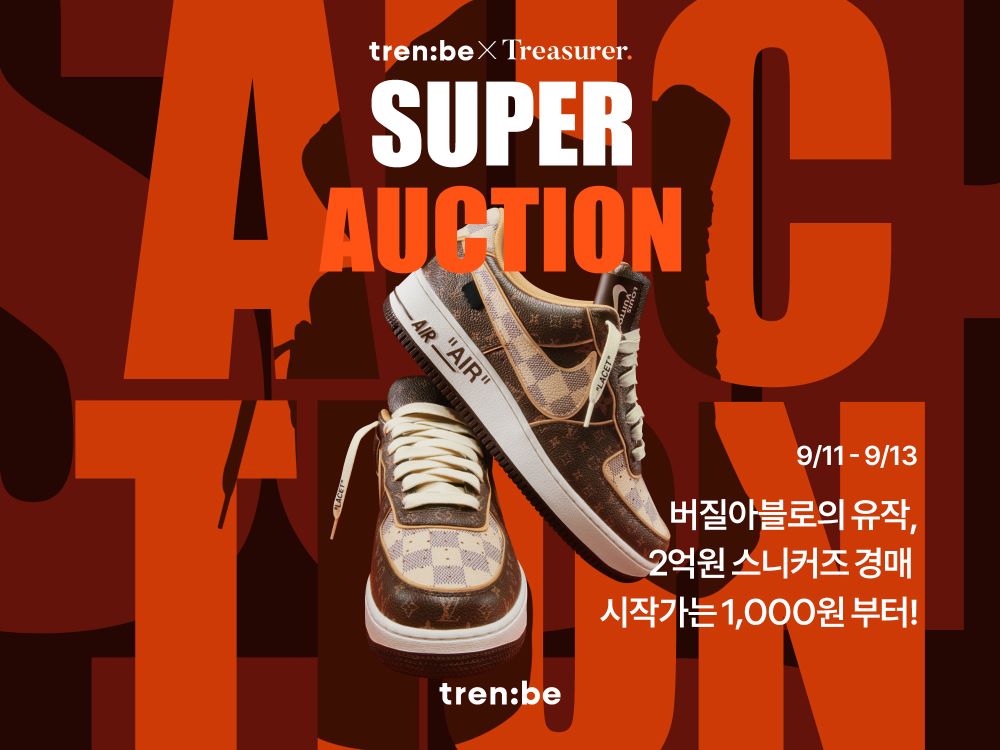 트렌비가 명품 조각 투자 플랫폼 트레져러와 함께 슈퍼 옥션 이벤트로 2억원 상당의 버질아블로 유작 스니커즈를 1천원에 경매를 시작한다.