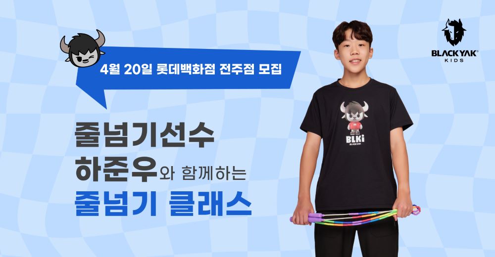 ‘블랙야크 키즈’가 오는 31일까지 ‘줄넘기 선수 하준우와 함께하는 줄넘기 클래스’에 참가할 신청자를 모집한다.