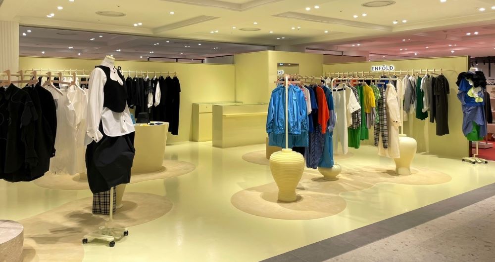 신세계 본점, 강남점, 센텀시티점에 이은 국내 네 번째 단독 매장이다. ‘엔폴드’는 2011년 크리에이티브 디렉터 미즈키 우에다가 설립한 여성 컨템포러리 브랜드다. 로고를 크게 부각시키는 기존 신명품과 달리 로고를 드러내지 않고 구조적인 실루엣에 집중하는 것으로 유명하다. 국내에는 2022년 론칭했으며 최근 독창적이고 개성 있는 스타일을 추구하는 젊은 층에게 큰 호응을 얻으며 인기가 더욱 높아지고 있다.