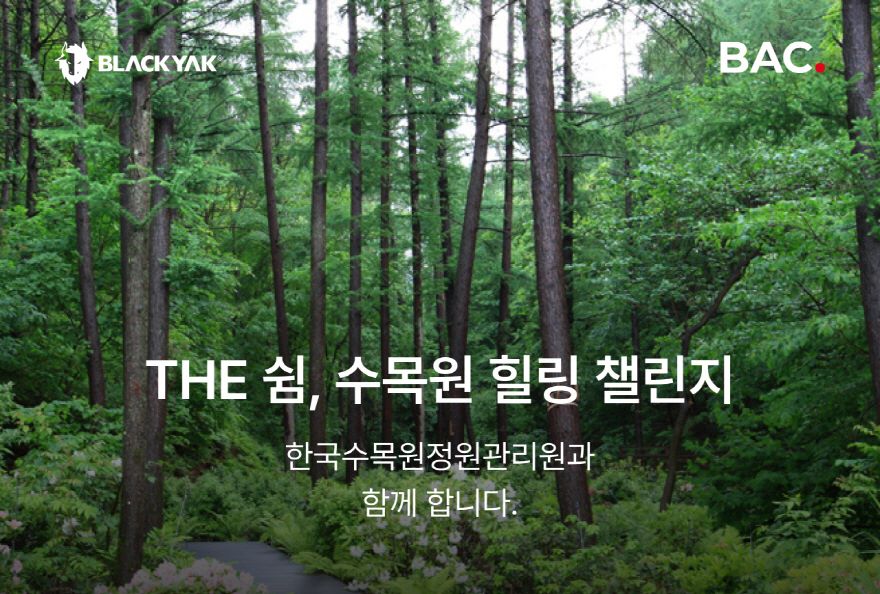 ‘블랙야크’가 국내 최대 규모 아웃도어 커뮤니티 플랫폼 블랙야크 알파인 클럽(BAC)과 한국수목원정원관리원과 함께 수목원 힐링 챌린지를 진행한다.