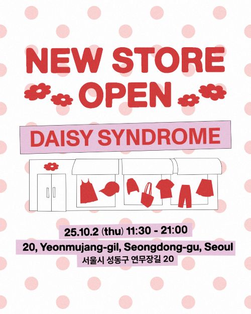 온라인을 기반으로 빠르게 성장해온 ‘데이지 신드롬’은 이번 성수 플래그십 스토어를 통해 오프라인 채널로의 확장을 본격화하며 고객과 직접 소통할 수 있는 새로운 접점을 마련한다.