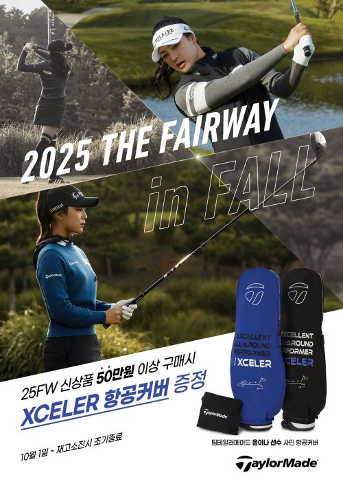 항공커버는 엑셀러 대표 컬러 스트롱 블루와 ‘테일러메이드’를 상징하는 블랙 두 가지 컬러로 제작됐다. 브랜드 모델 윤이나 프로의 사인 로고가 특별하게 새겨진 한정판 제품으로 엑셀러 시그니처 문구인 ‘EXCELLENT ALL-AROUND PERFORMER’가 디자인 포인트로 적용돼 있어 기능성과 브랜드 감성을 동시에 느낄 수 있다.