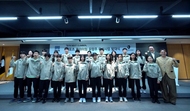 ‘BYN 넥스트 클라이머’는 스포츠 클라이밍 유망주 육성을 위한 재단의 신규 공모 사업이다. 재단은 공신력 있는 전국 대회에서 활약해 온 중등부 선수 11명과 고등부 선수 9명 등 총 20명의 선수들을 선발했으며 대한민국 스포츠 클라이밍의 글로벌 경쟁력 향상 및 유망주들의 역량 강화를 위해 의류 및 용품 등 아낌없는 지원을 약속했다.