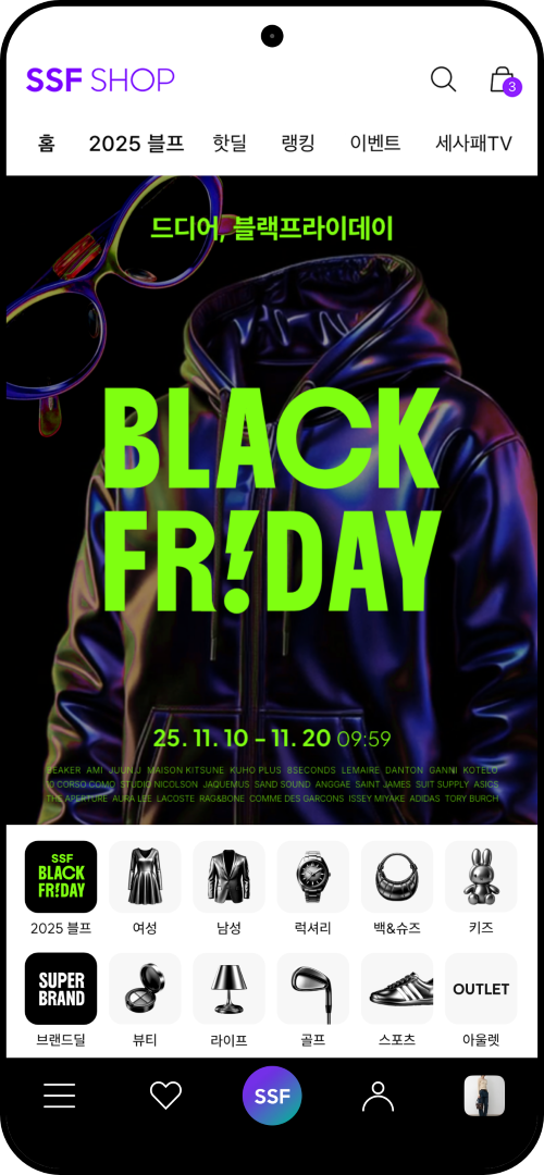 SSF샵은 블랙 프라이데이 기간 동안 매일 오전 10시부터 다음날 오전 9시 59분까지 그날의 슈퍼브랜드딜을 진행한다. 10일 프로모션 시작과 함께 ‘메종키츠네’와 ‘아미’의 슈퍼브랜드딜이 시작되며 삼성물산 패션부문이 운영하는 ‘빈폴’, ‘에잇세컨즈’, ‘구호’, ‘준지’, ‘자크뮈스’, ‘띠어리’, ‘비이커’ 등 주요 브랜드가 순차적으로 참여한다. 또한 COS, 리바이스, 오니츠카 타이거, 말본골프, JAJU, UGG, 풋조이, 커버낫 등 다양한 입점 브랜드도 특별한 할인 혜택을 제공한다.