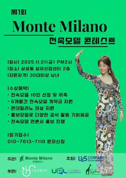 국내 대표 시니어 패션 브랜드 ‘몬테 밀라노’가 오는 11월 21일 삼성동 섬유센터 2층에서 ‘제1회 몬테 밀라노 전속모델 콘테스트’를 개최한다.