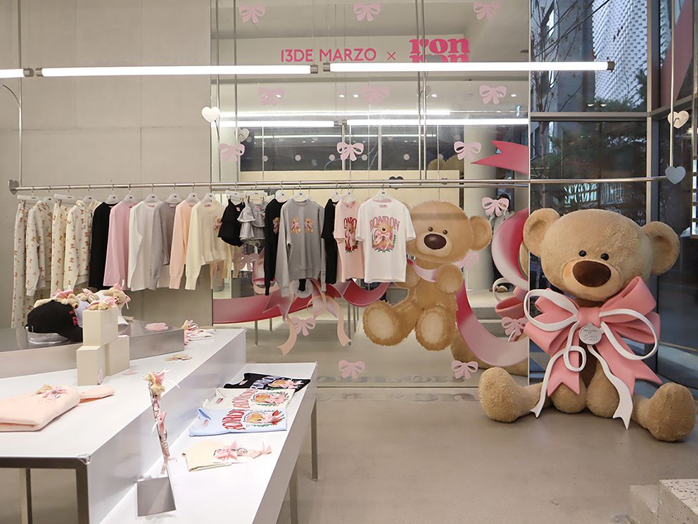 12월 16일부터 12월 28일까지 ‘론론’의 한남 플래그십 스토어에서 진행되는 팝업스토어 역시 ‘론론’과 ‘13DE MARZO’ 특유의 사랑스럽고 유니크한 세계관을 경험할 수 있도록 연출했다. ‘론론’의 시그니처 리본으로 장식한 외관은 선물을 열기 전의 설렘을 표현했으며 매장 안쪽에는 대형 ’MARZO BEAR’ 포토존을 마련해 방문객들이 함께 사진을 찍으며 즐거운 추억을 남길 수 있는 공간을 구성했다.