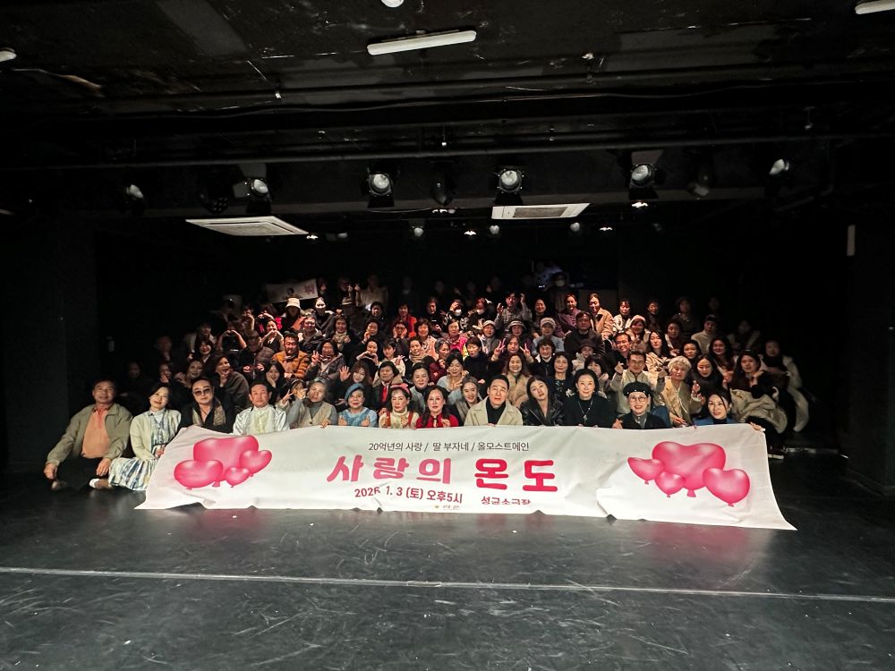 라온 시니어 모델 에이전시가 주최한 연극 공연 ‘사랑의 온도’가 2026년 1월 3일 대학로 성균소극장에서 관객들의 뜨거운 호응 속에 막을 내렸다.
