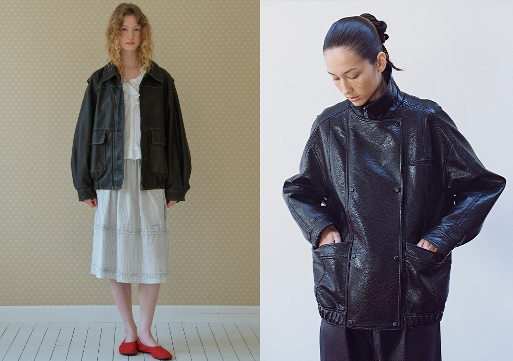 이러한 흐름에 발맞춰 디자이너 브랜드들의 신제품 출시도 활발하다. 브랜드 ‘반로에’가 출시한 ‘더블 스냅 버튼 페이크 레더 재킷’은 빈티지한 크랙 질감과 은은한 광택감이 특징이다. ‘튜드먼트’의 ‘워시드 봄버 레더 재킷’은 자연스럽게 빛 바랜 워싱 가공이 돋보이는 제품으로 유니크한 스타일 연출이 가능하다.