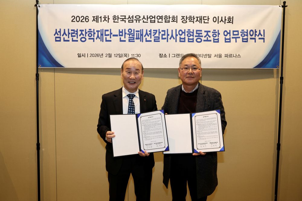 한국섬유산업연합회 장학재단(이사장 최병오)이 2월 12일 삼성동 그랜드인터컨티넨탈호텔에서 2026년도 제1차 이사회를 개최하고 섬유패션 미래 인재 육성을 위한 2026년 장학사업 운영 계획을 의결하였다.