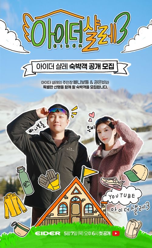 ‘아이더’가 여행 크리에이터 빠니보틀과 가수 권은비와 함께하는 브랜드 유튜브 웹 예능 콘텐츠 ‘아이더 샬레’ 시즌 3의 숙박객을 모집한다.