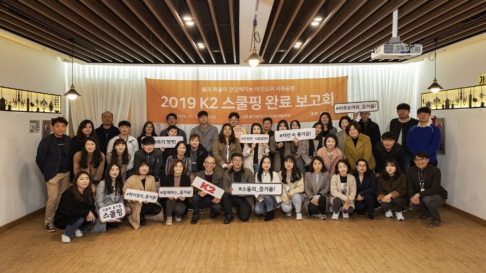 ‘K2’가 지난 13일 김대중컨벤션센터 델리하우스에서 사회공헌활동인 소통 증진 아웃도어 프로그램 스쿨핑의 광주 지역 완료보고회를 가졌다.