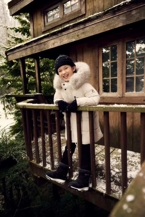 탈부착 가능한 퍼 장식고리가 함께 제공되는 ‘히말라야 WSP 여아 구스 롱다운 자켓’도 있다. 풍성한 후드의 퍼와 허리 쪽에 달 수 있는 퍼 장식 고리로 포인트를 줄 수 있는 여아용 아우터로 소매 부분에는 원형의 로고 금속 와펜을 더해 세련된 무드를 끌어올렸다. 허리 내부에는 스트링이 있어 체형에 맞게 핏을 조절할 수 있다.