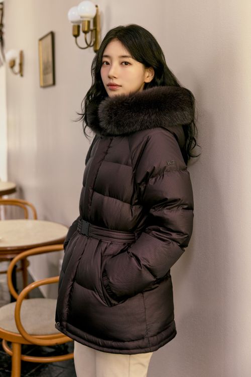 대표 제품인 ‘K95 베이글 폭스’는 허리 라인을 강조하는 벨트 디테일이 돋보이는 여성 퍼 다운이다. 90호 기준 약 740g의 경량 무게로 일반적인 여성 퍼 다운(약 1.1kg)보다 약 30% 이상 가벼우면서도 탁월한 보온성을 자랑한다.