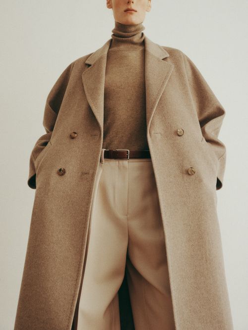 먼저 대표 제품인 ‘아이코닉 더블 스티치 코트’는 이탈리아 콜롬보사의 100% 캐시미어 원단을 사용했다. 모직 표면에 물결무늬를 만들어내는 지블링 공법으로 은은한 광택과 깊이 있는 질감을 구현했으며 부드럽게 떨어지는 어깨선과 섬세한 스티치 디테일이 어우러져 우아한 실루엣을 완성했다.