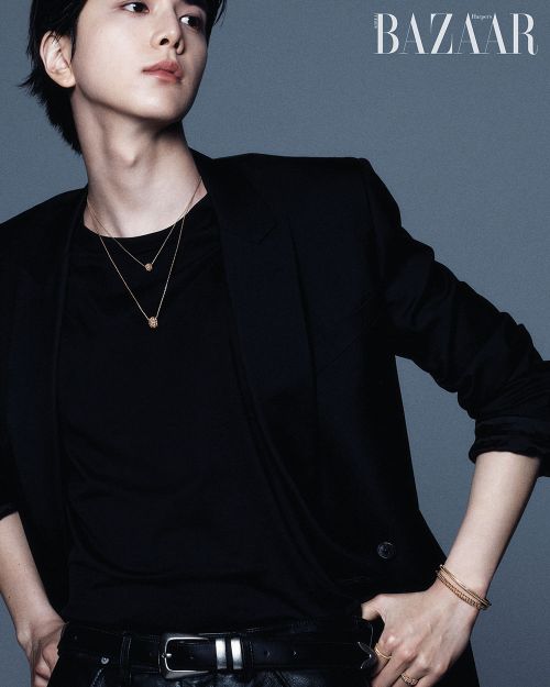 영훈의 깊이 있는 눈빛이 돋보이는 화보에서 착용한 제품은 ‘골든듀’의 시그너처 라인 ‘듀이터널스’로 연속적으로 이어져 있는 이슬방울 모티브가 움직임에 따라 다채로운 광택을 선사한다. ‘골든듀’의 대표적인 베스트셀링 디자인으로 영훈은 서로 다른 사이즈와 금속컬러의 듀이터널스 제품을 레이어드하여 더욱 스타일리시하게 연출했다.