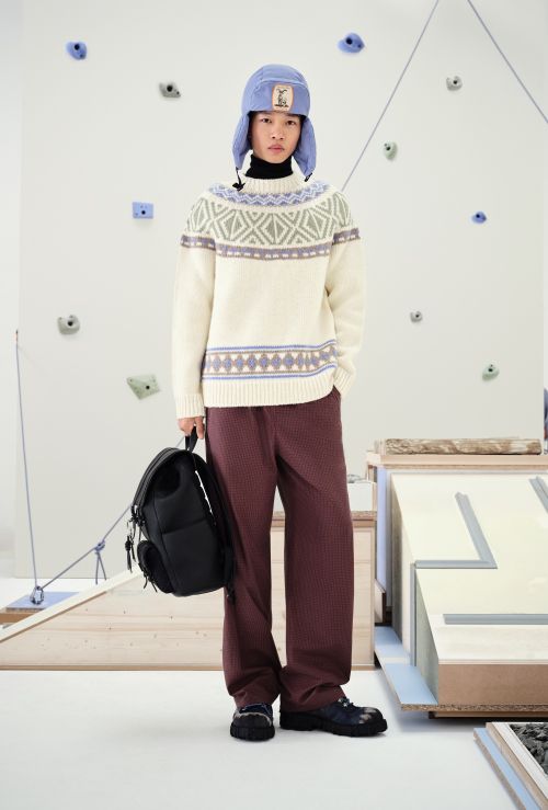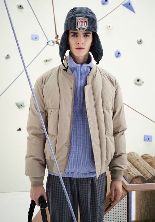 아웃도어 문화와 럭셔리에 깃든 품격이 조화를 이루는 블레이저와 터틀넥을 카고 팬츠 또는 스키 팬츠와 매치한 스타일링을 통해 포멀함과 캐주얼함의 경계를 넘나드는 현대적 남성미를 제시하며 블루, 버건디, 브라운 등으로 전개된 아이비리그 체크 패턴 셔츠가 컬렉션의 다채로운 무드를 더한다.