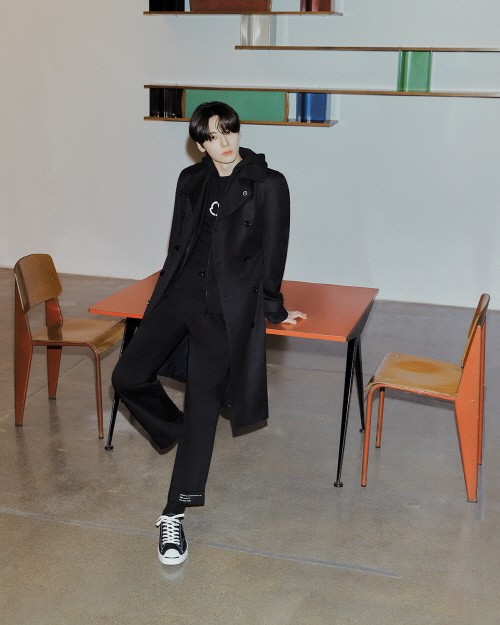 디지털 화보 속 황민현은 ‘7 몽클레르 프래그먼트’ 컬렉션의 시그니처 아이템들과 더불어 이미 많은 이들의 사랑을 받고 있는 컨버스의 잭퍼셀을 착용해 그만의 독보적인 분위기를 자아낸다. 이번 시즌 처음으로 출시되는 잭퍼셀은 미니멀한 베이스에 대비가 강조된 스티칭, 프래그먼트식으로 재해석한 앞코의 스마일 디테일로 특별함을 더했다.