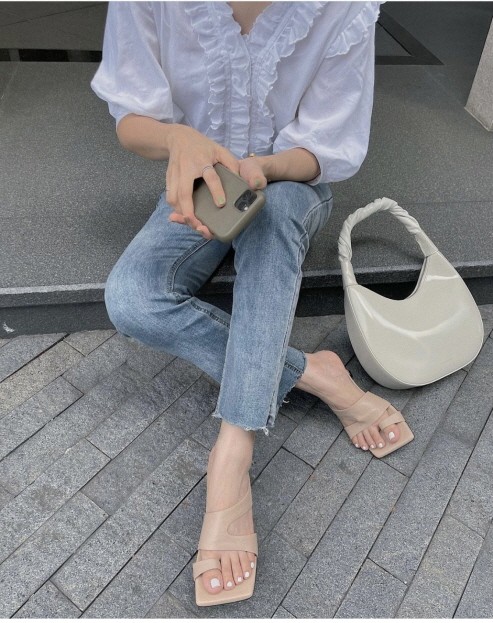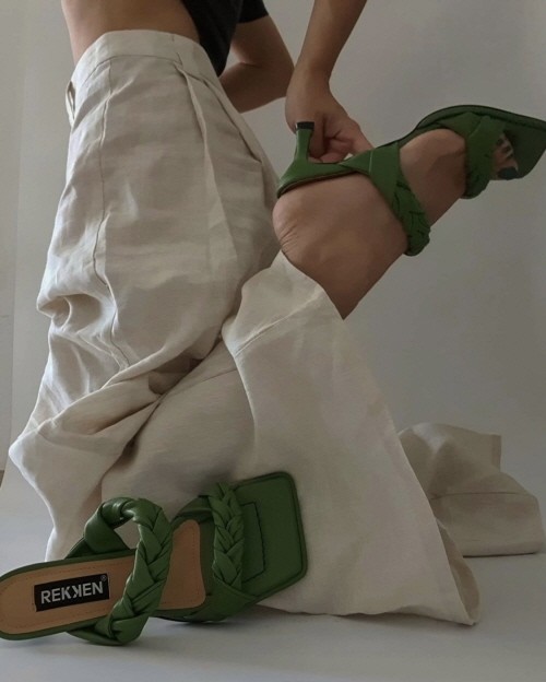 먼저 2021 패션 트렌드로 주목받고 있는 위빙 샌들이 눈길을 끈다. 시크한 리넨 와이드 팬츠로 데일리룩을 완성한 인플루언서는 위빙 디테일이 돋보이는 올리브 컬러 위니 샌들을 선택했다. 와이드 스퀘어 토우와 우아한 곡선미의 하이힐은 스타일링에 멋스러움을 더해주며 다양한 컬러로 출시되어 모노톤룩에 포인트 주기에도 좋다.