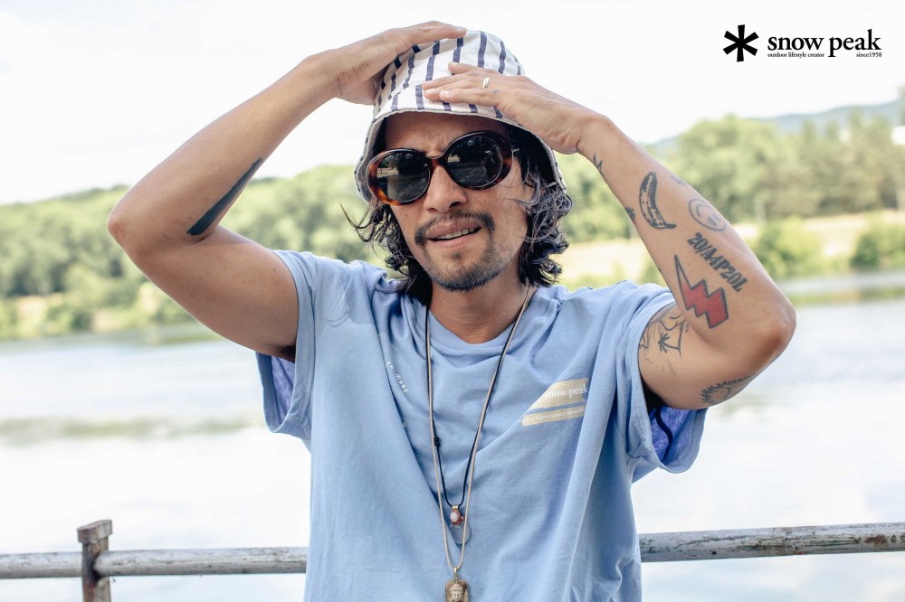 ‘스노우피크 어패럴’의 티셔츠는 데님 팬츠와 착용하면 캐주얼한 여름 패션을 완성할 수 있으며 여기에 버킷햇이나 볼캡을 포인트 아이템으로 매치하면 류승범처럼 스타일리시한 스타일을 연출할 수 있다.