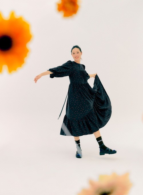 화보 속 그녀는 세련된 톤 앤 무드를 바탕으로 브랜드의 시그니처 아이템인 니트와 원피스, 블라우스를 다양하게 선보였다플라워 패턴이 매력적인 블라우스와 데님 팬츠로 자연스러운 멋을 선보이기도 하고 로맨틱한 원피스와 포근한 가디건을 걸쳐 가을 분위기를 완성했다