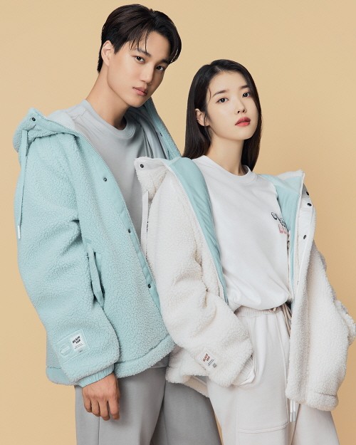 특히 아이유가 입은 플리스의 안감이 카이가 착용한 라이트 그린의 플리스와 통일감을 줘 꾸미지 않은 듯 한 커플 시밀러룩 스타일링을 완성했다.