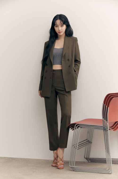 뿐만 아니라 미니멀한 라인이 매력적인 수트 셋업에 크롭톱과 스트랩 슈즈로 매니시한 룩을 연출하며 직장인 여성들에게 스타일리시한 수트 스타일링을 제안한다.
