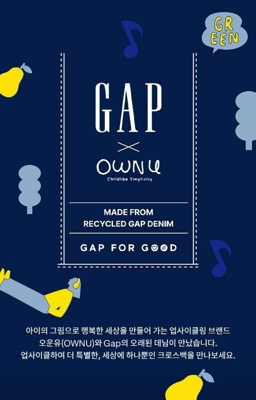 이번 협업에서는 시즌이 지난 ‘갭’의 데님을 재활용해 이를 업사이클 데님 크로스백으로 재탄생시켰다는 점에서 주목할 만하다. 업사이클링을 통한 지속 가능성을 추구하는 ‘오운유’와 데님을 기반으로 전개되는 ‘갭’이 절묘하게 조화를 이뤘다는 평이다.