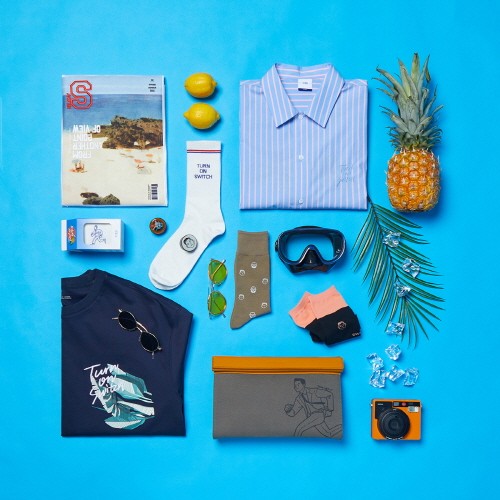 ‘지이크’와 성낙진 작가의 콜라보레이션 타이틀은 ‘스위치를 켜다’라는 뜻의 ‘Turn on Switch’로 상상 속 휴양지에서 일하는 캐릭터의 모습을 통해 이상과 현실이 Switch 되는 모습을 일러스트로 표현한 것이 특징이다.