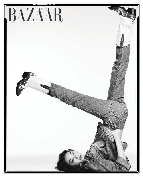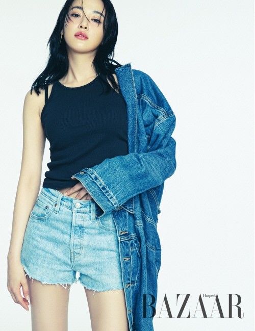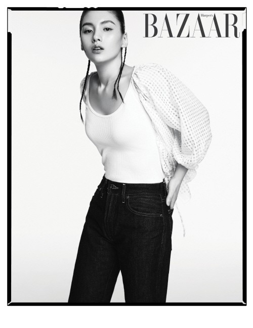또한 배우 김용지는 페미닌한 무드의 블라우스와 남성 리바이스’ 501진으로 시크한 무드의 스타일링을 선보였다.