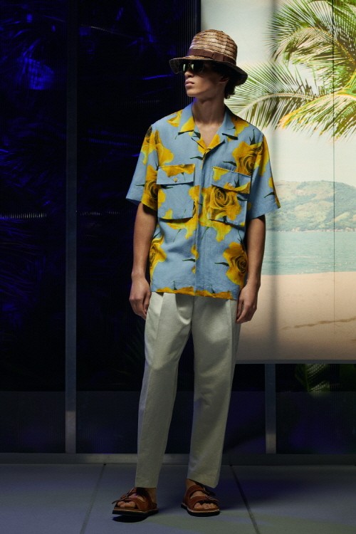 또한 은은한 광택이 느껴지는 비스코스와 시원한 리넨 소재를 사용하여 가볍고 편안한 착용감을 선사한다. 시즌을 대표하는 프린트답게 드레스와 스커트부터 실용적인 반팔 셔츠, 재킷에 이르기까지 다양한 남성복과 여성복에 적용되었다.
