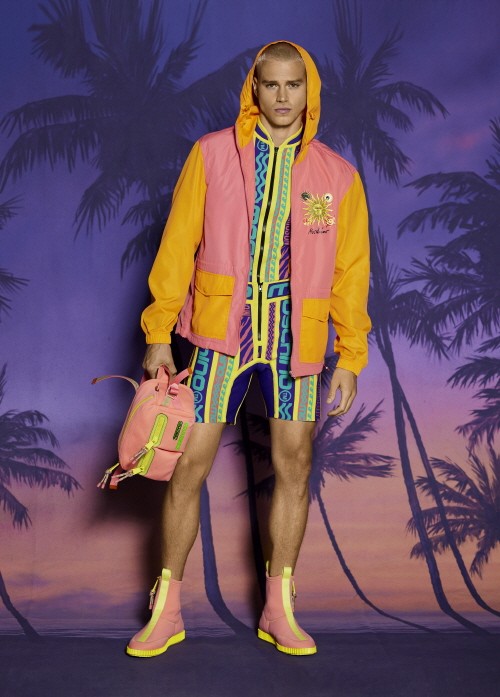 제레미 스콧은 이번 맨즈웨어 리조트 컬렉션을 네온 빛으로 물들여 수트 및 스트리트웨어 스타일로 풀어내었으며 이 모든 것은 서핑 스타일의 프리즘을 통해 영감을 받아 제작되었다.