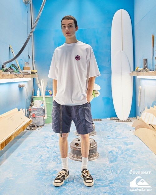 50년 역사의 스포츠 웨어 브랜드 퀵실버와 함께한 이번 컬렉션은 서퍼 윈드브레이커, 서퍼 윈드브레이커 쇼츠, 서퍼 집업, 서퍼 쇼츠 등 셋업으로 입을 수 있는 상품과 롱 슬리브, 숏 슬리브, 버킷햇, 캠프캡으로 구성됐다.