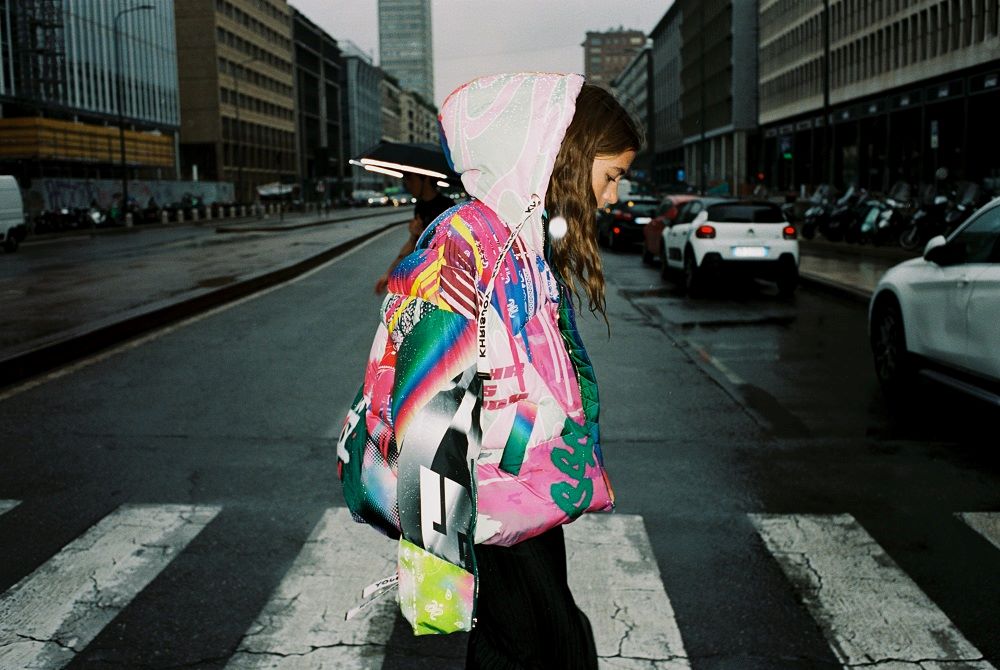 밀크, 바닐라, 민트와 같은 연한 파스텔 컬러와 브랜드의 시그니처인 그라피티와 반다나 룩에서 찾을 수 있는 단색과 밝은 스플래시를 메인 컬러로 서로 자연스러운 조화를 이루며 전체적인 아웃핏을 형성한다.