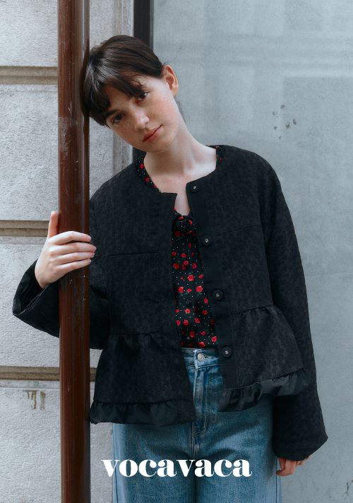 클래식한 실루엣에 벨벳 소재와 빈티지한 자수로 따뜻함을 더해주는 로즈 유넥 벨벳 재킷도 유니크한 무드를 배가시켜 준다.