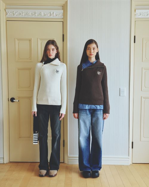 ‘로씨로씨’의 시그니처 아이템인 ‘RCC 하프 집업 니트’를 재해석한 ‘오블리크 라인 롱 슬리브 니트’는 넥부분의 집업을 사선의 슬릿으로 처리해 유니크한 매력을 강조했다. 소매단 역시 지퍼로 처리해 투웨이 연출이 가능하며, 몸을 부드럽게 감싸는 슬림한 실루엣으로 부담 없이 착용할 수 있다.