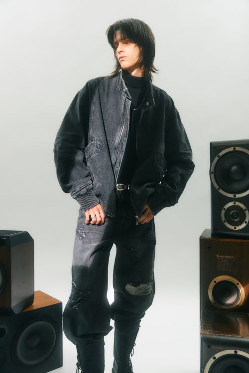 대표 상품으로 제안하는 ‘크리즈 데님 봄버 자켓’은 간절기에 활용하기 좋은 데님 소재 자켓으로 표면이 닳은 듯한 느낌을 표현하는 워싱 기법과 구겨진듯한 질감을 표현한 크리즈워싱 가공을 통해 빈티지한 분위기를 표현 했다. 오버핏 사이즈와 소매와 밑단 부분에 일정한 가격으로 자수를 놓아 주름을 만들어 고정한 스모킹 마감 기법으로 독특함을 더해 눈길을 끈다. 이번 시즌 함께 선보이는 ‘디스트로이드 와이드 데님 팬츠’와 동일한 소재로 상하의로 착용하면 더욱 트렌디한 셋업룩을 연출 할 수 있다.