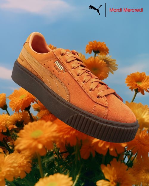 ‘푸마’의 스테디셀러인 스웨이드 플랫폼은 가을 감성이 묻어나는 오렌지, 화이트 2가지 색상으로 출시된다. 푸마를 상징하는 측면 폼스트립이 톤온톤으로 배치돼 감각적인 무드를 자아내며 플랫폼 트렌드를 반영한 미드솔 디자인이 특징이다.