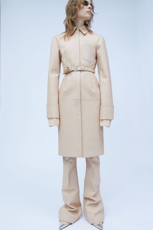 손으로 만졌을 때 새로운 패턴을 만들어내는 열 감지 코팅 원단은 슈트에 미래적인 느낌을 불어넣었고 블랙 혹은 크림 바닐라 색의 가죽 마이크로 트렌치코트와 트롱프뢰유 보디스를 덧입고 있는 뷔스티에 스타일 드레스, 그리고 부드러운 파스텔 톤의 폭신한 스마트 퍼 장식은 유혹의 눈길을 보내는 듯한 묘한 매력을 내뿜는다.