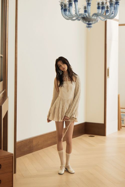 발레리나를 연상하게 하는 여성스럽고 단아한 실루엣의 안테아는 시즌 트렌드에 어울리는 메탈릭 소재로 선보였다. 룩에 화사한 포인트를 줄 수 있으며 화보 속 모델처럼 시어한 소재의 스커트와 코디하면 한층 더 매력적인 봄 스타일링을 연출할 수 있다.