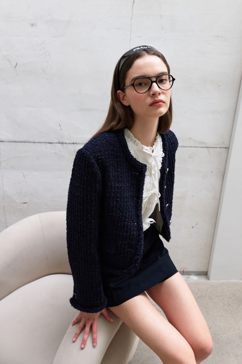 대세로 떠오르고 있는 오피스 룩 트렌드를 위해 반드시 필요한 아이템 중 하나는 블레이저. 마론에디션의 코튼 트위드 블레이저는 크롭된 기장감으로 경쾌하게 연출하기 좋다.