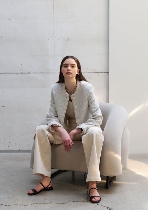 특히 퓨어한 오프 화이트 컬러의 ‘화이트 코튼 트위드 블레이저’는 탄탄한 썸머 코튼 조직감과 아웃라인의 울테이프 디테일로 고급스러운 무드를 더했다. 오피스 밖에서는 데님과 함께 매치해 캐주얼하게 연출해도 좋다.