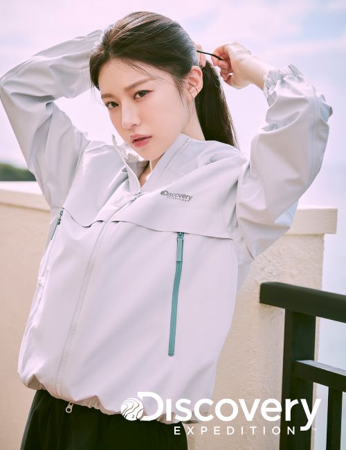 고윤정이 화보 속에서 착용한 ‘디스커버리’의 여성 베르텍스 고어 윈드스토퍼 미드기장 자켓은 우수한 투습성과 방풍 기능을 갖춘 기능성 소재를 적용하여 아웃도어 활동에 최적화된 제품이다.