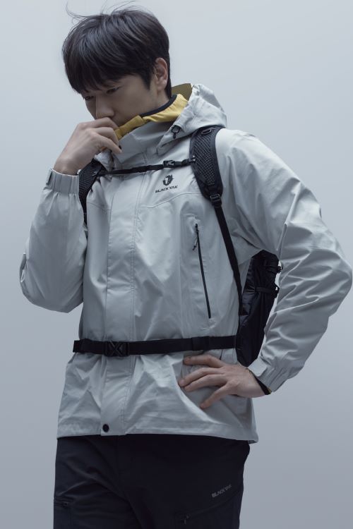 또 다른 착장 제품 ‘노카엔 GTX 3L 자켓’은 고어텍스 소재를 사용한 3레이어 구조의 후드 일체형 자켓이다. 방수와 발수, 그리고 방풍 기능을 고루 갖췄을 뿐 아니라 벤틸레이션 디테일을 통하여 우수한 통기성을 전달하는 고기능성 봄 바람막이다. 가슴 부위에 있는 ‘블랙야크’만의 이중 구조 벤틸레이션 지퍼는 위쪽으로 열면 통기성을 높이고 아래쪽으로 열면 주머니로 사용 가능해 높은 수납력을 자랑한다. 손석구는 청량한 블루 컬러를 착용했다.
